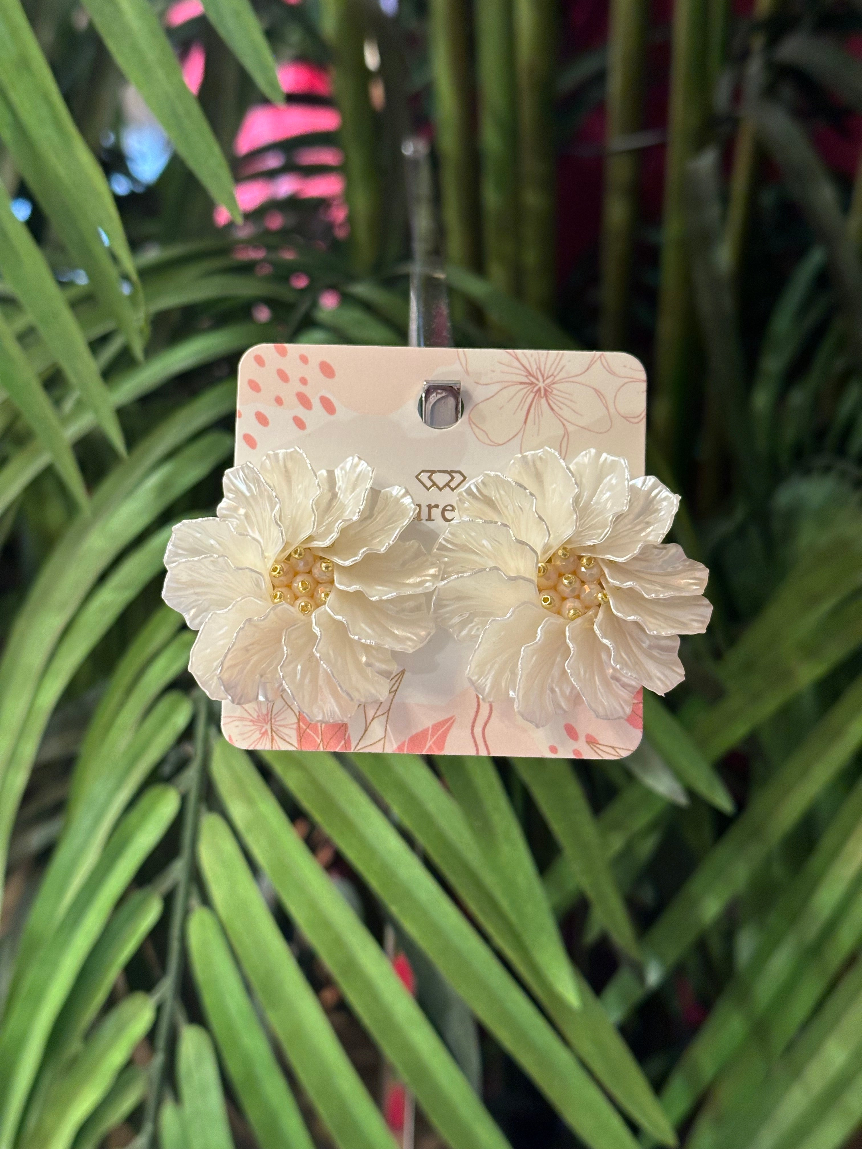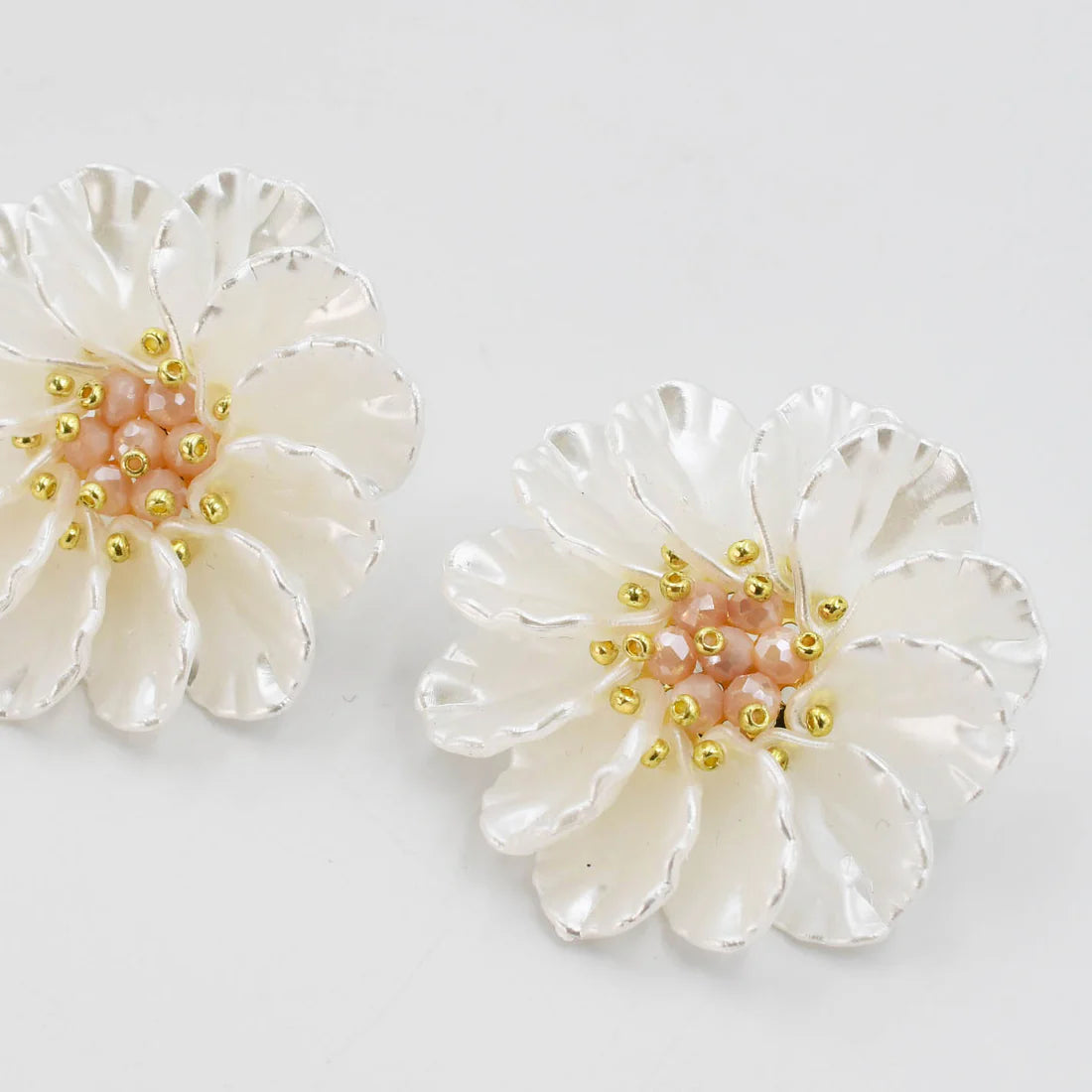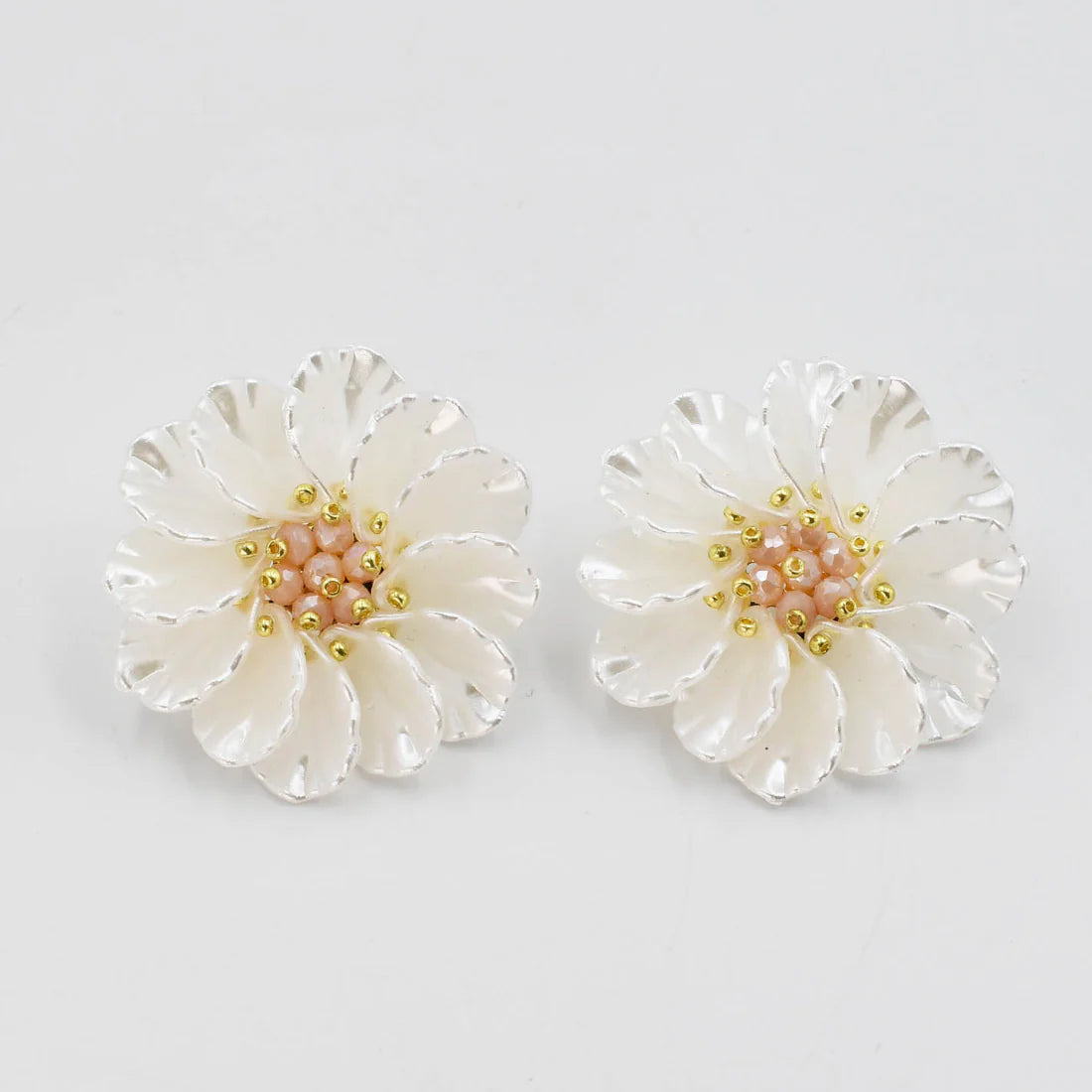 Floral Fuchsia Pink Beaded Hoop Earrings