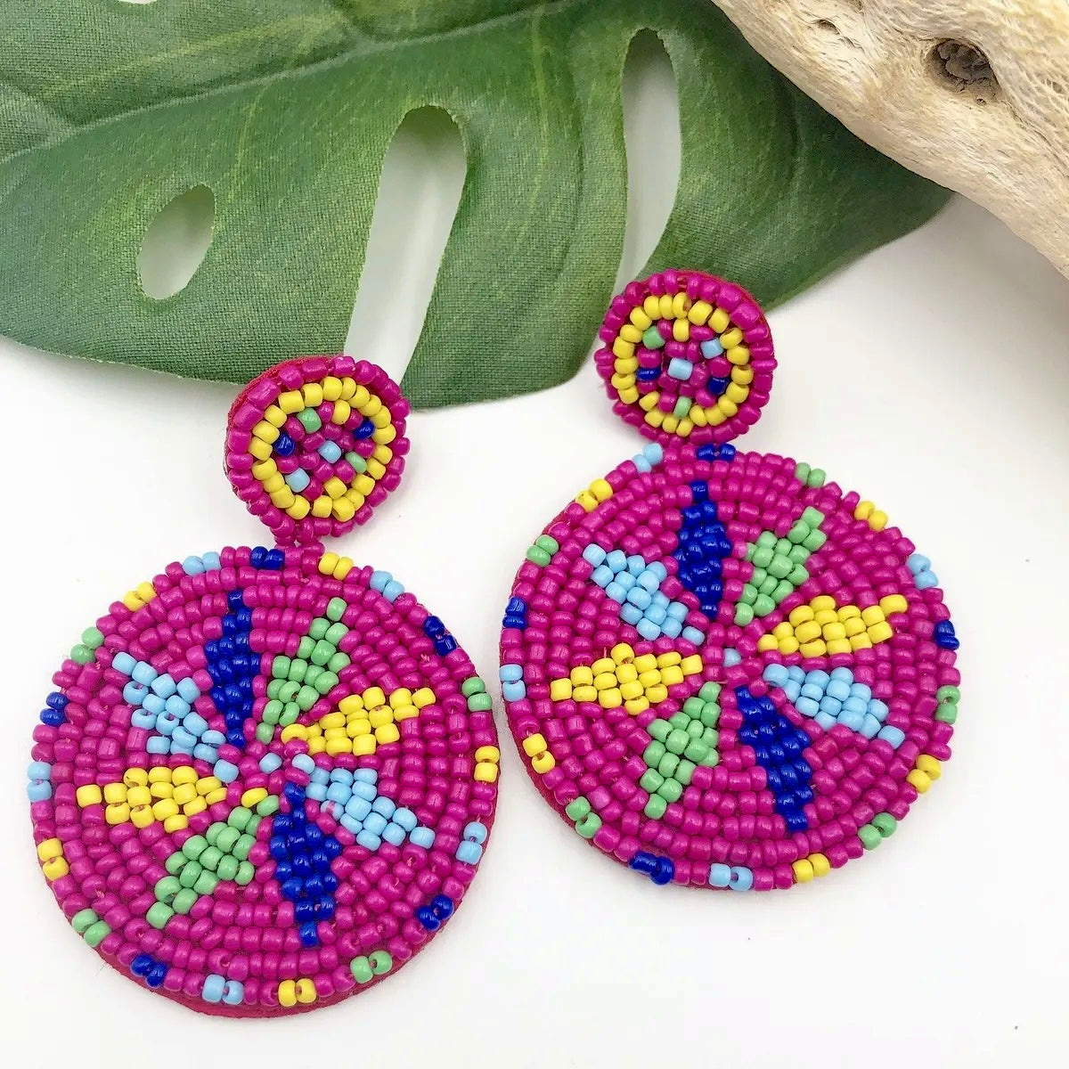 Colorful Wayuu Hand-Beaded Circle Earrings