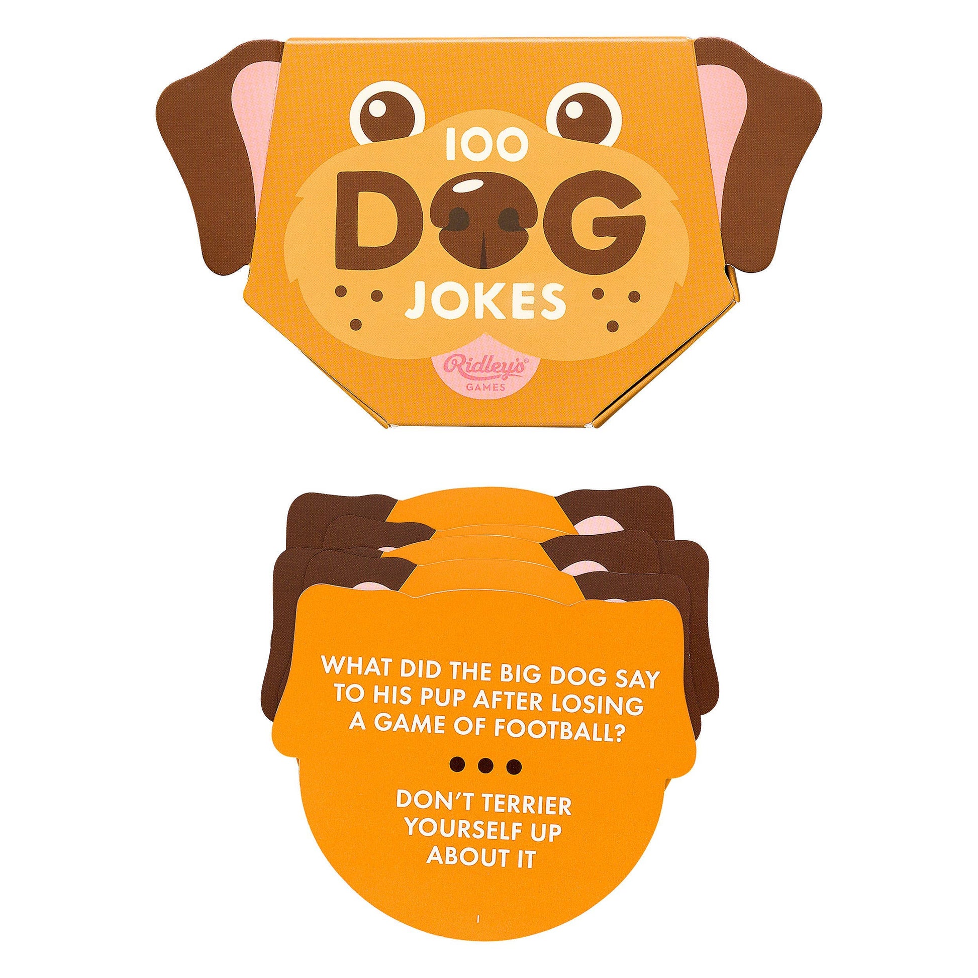Have a barking good time joking about man's best friend with these 100 Dog Jokes from Ridley's Games! Entertain friends and family with 100 dog jokes like 'What do you call a dog that's cold? A chili dog!'. The 100 shaped cards come in a fun and unique dog shaped box. A perfect gift to inspire a load of laughter!