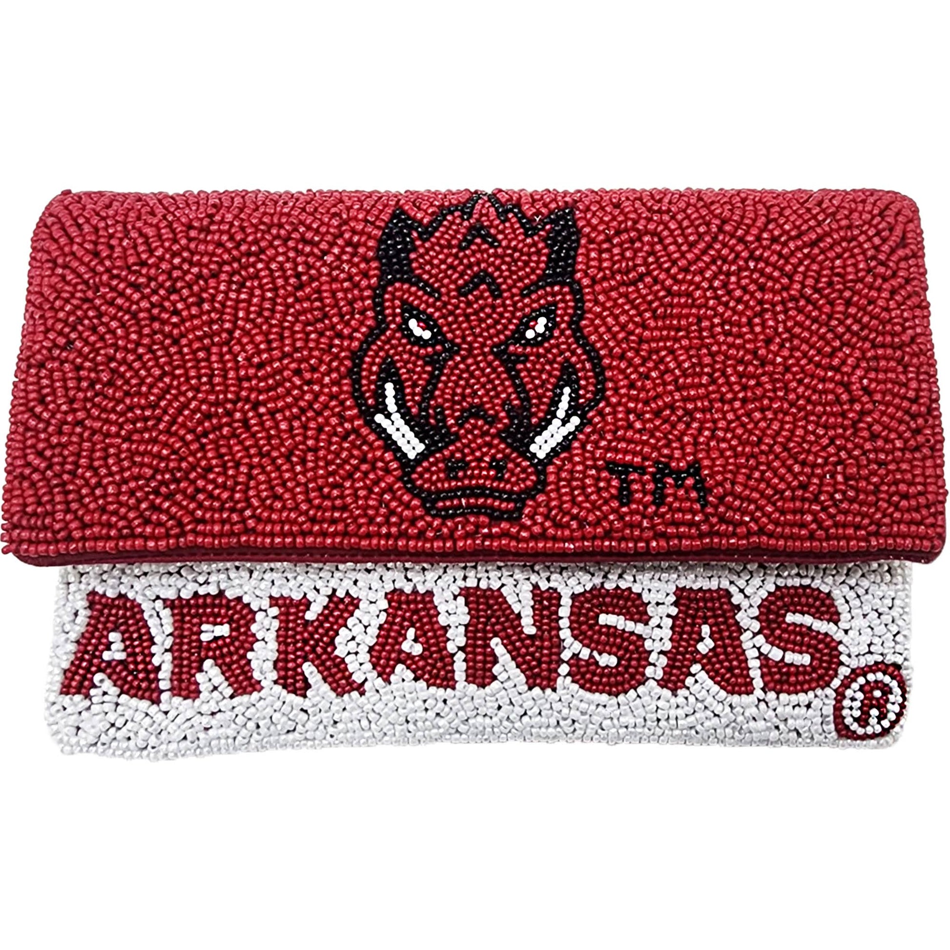 Product DescriptionLICENSED ARKANSAS BEADED MINI CROSSBODY BAG Silver chain drop: 21"