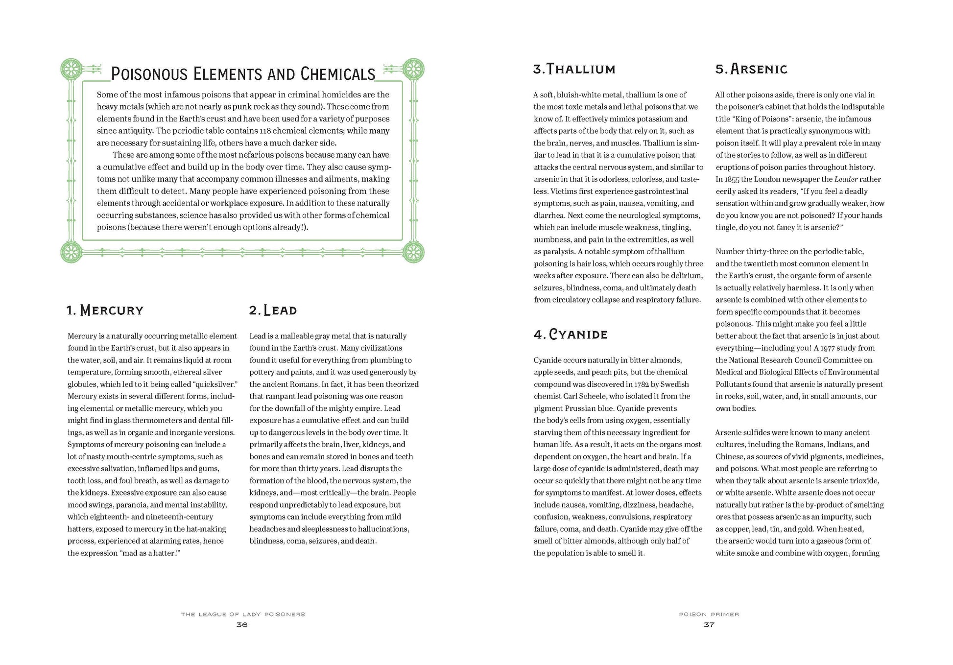 A feast for the senses, this sumptuously illustrated book will introduce you to some of the most infamous women throughout world history, united by their shared taste for poison. Welcome to the League of Lady Poisoners. This riveting and well-researched volume by Lisa Perrin weaves together the stories of more than twenty-five accused women poisoners, exploring the circumstances and skill sets that led them to lives of crime. You might find yourself rooting for some of them-like Sally Bassett, who helped poison her granddaughter's enslavers in Bermuda, or Giulia Tofana, who sold her name-brand concoction to women wanting to be rid of their abusive (or otherwise undesirable) husbands.