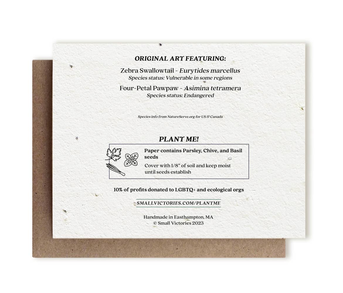 Zebra Swallowtail Butterfly & Pawpaw Plantable Herb Card